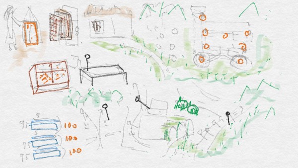 It is the yard of a house in a rural village.