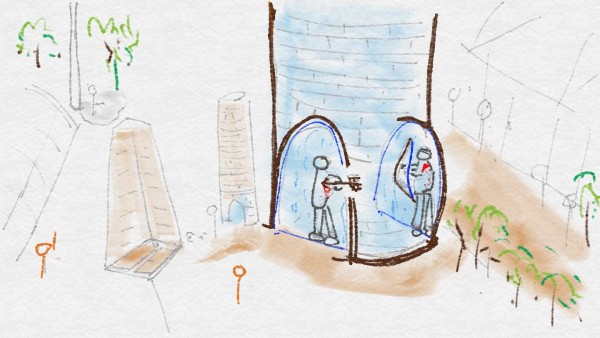 Both of these doors are filled with water. It seems like they are saying the environment is disadvantageous for the person who shot the arrow.
